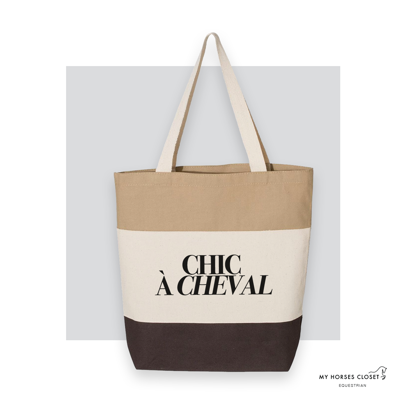 Chic à Cheval - Tote Bag Canvas TriColor - Chocolate/ Natural/ Khaki