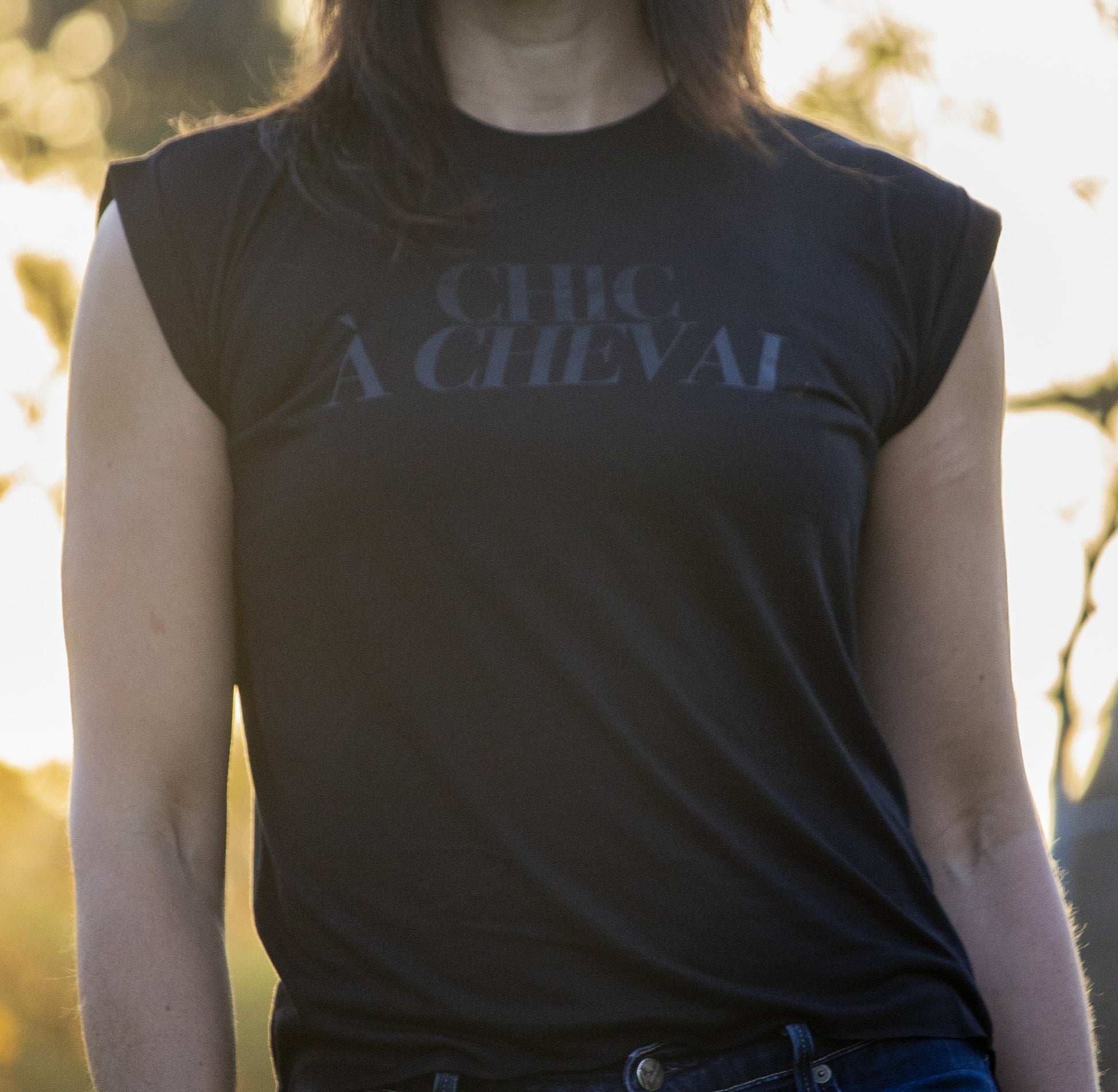 Chic à Cheval T-shirt Women's flowy Rolled Cuffs Black
