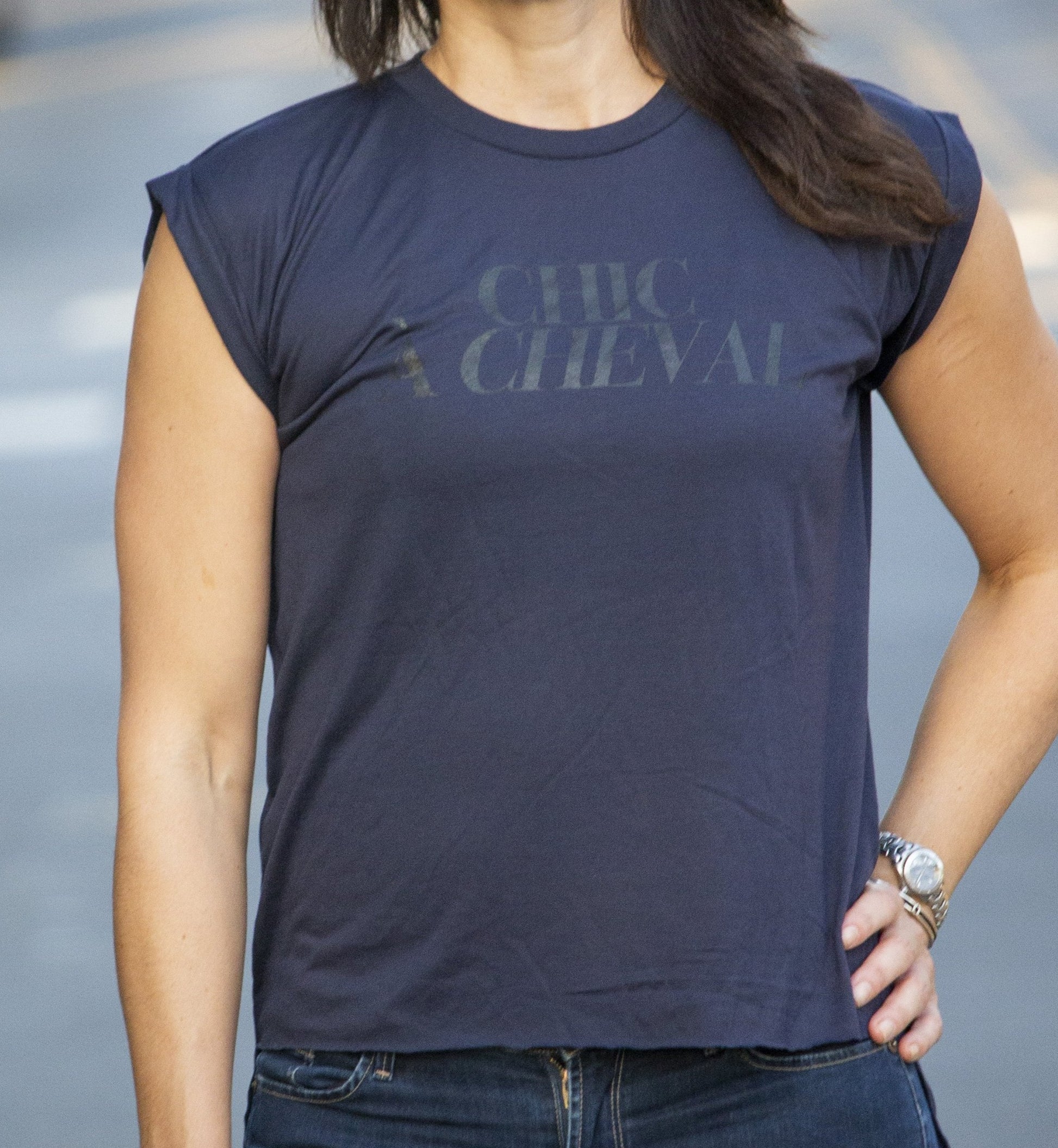 Chic à Cheval T-shirt Women's flowy Rolled Cuffs Navy Blue