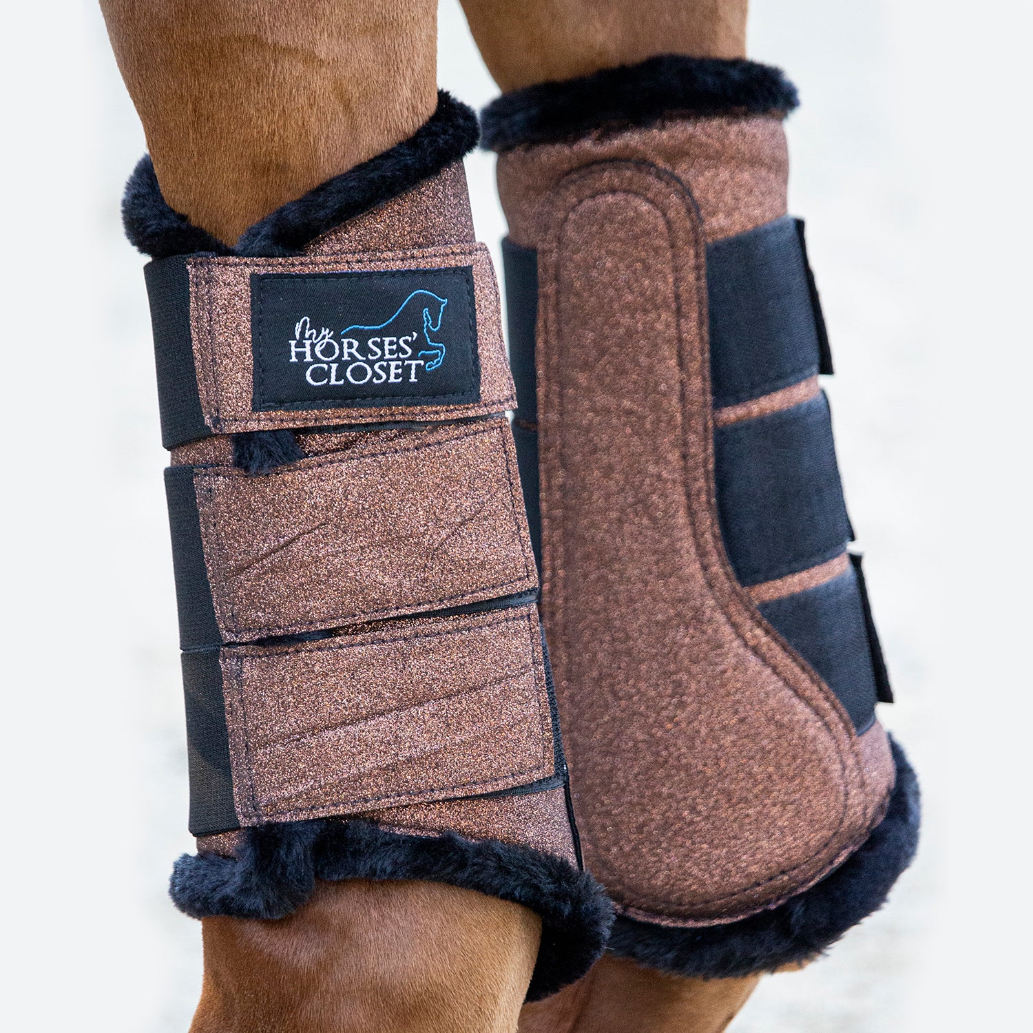 Glitter Sparkly Brushing Dressage Boots Copper Chocolate Brown