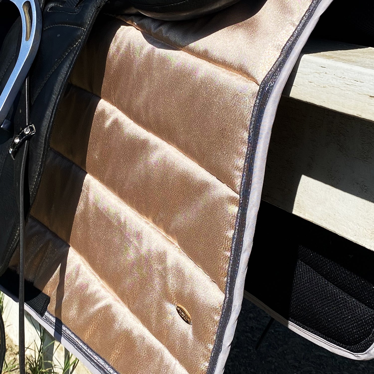 This super cute Metallic Lame Rose Gold Saddle pad has been created by me (Amelie) for YOU in my Creative Studio In Los Angeles.