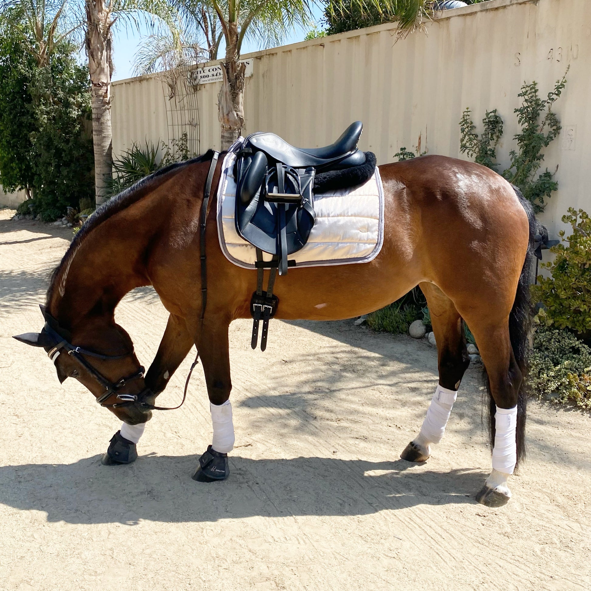 This saddle pad has an ergonomic & trendy design (drop) and is thin which makes it perfect for your summer rides!