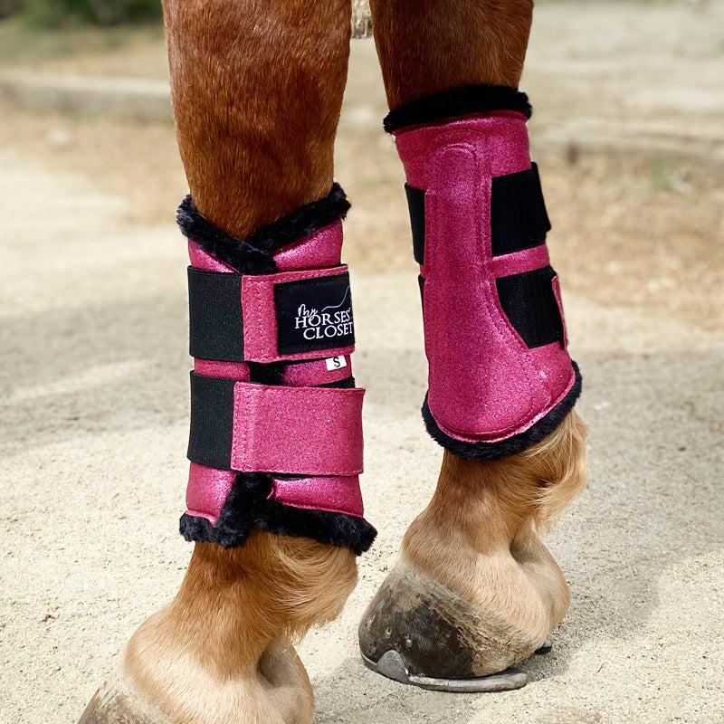 Glitter Sparkly Brushing Dressage Boots Hot Pink Fushia