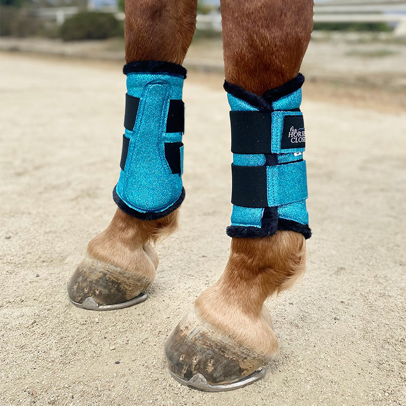 Glitter Sparkly Brushing Dressage Boots Turquoise