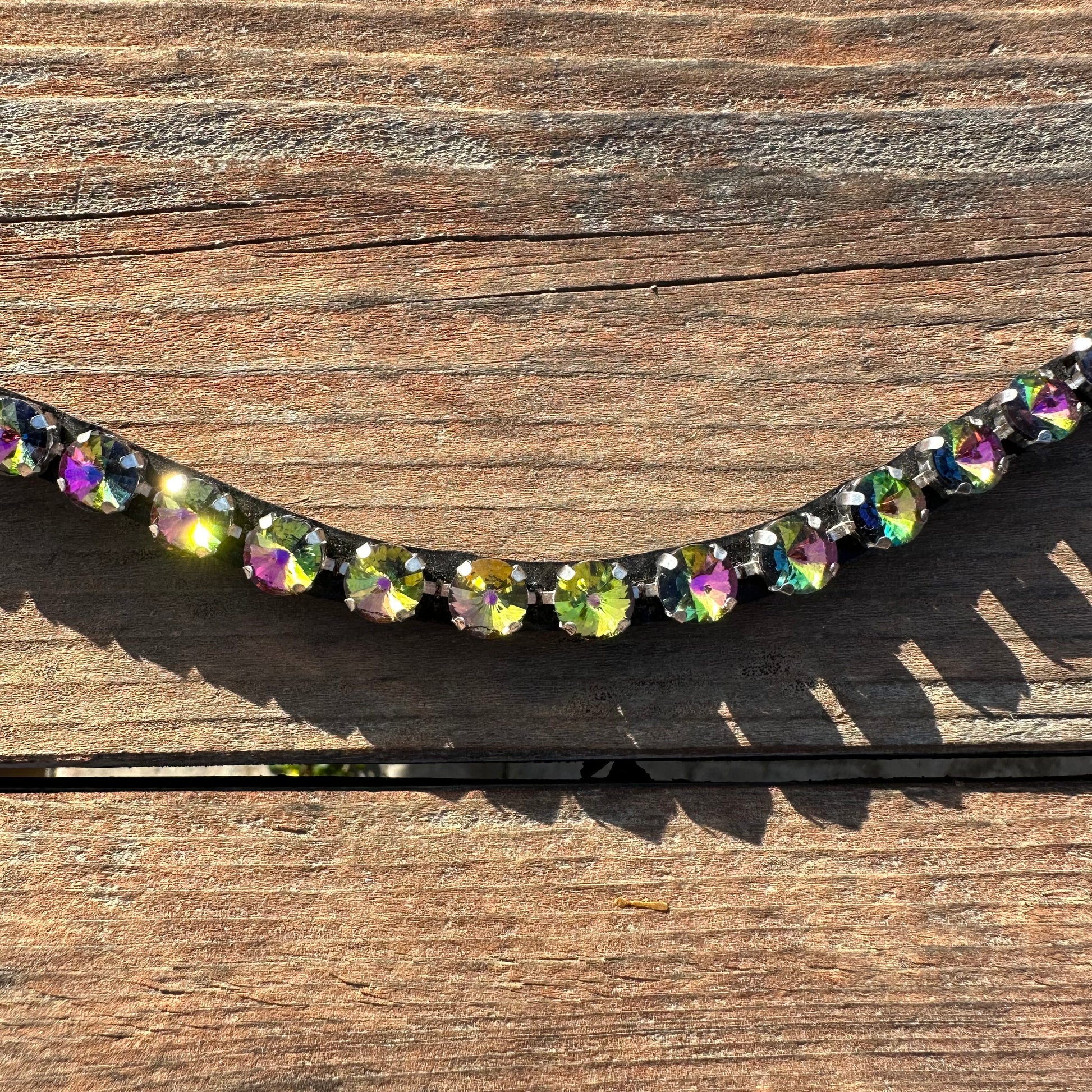 Green Purple Fluorite Crystal Rivet Snap on Browband