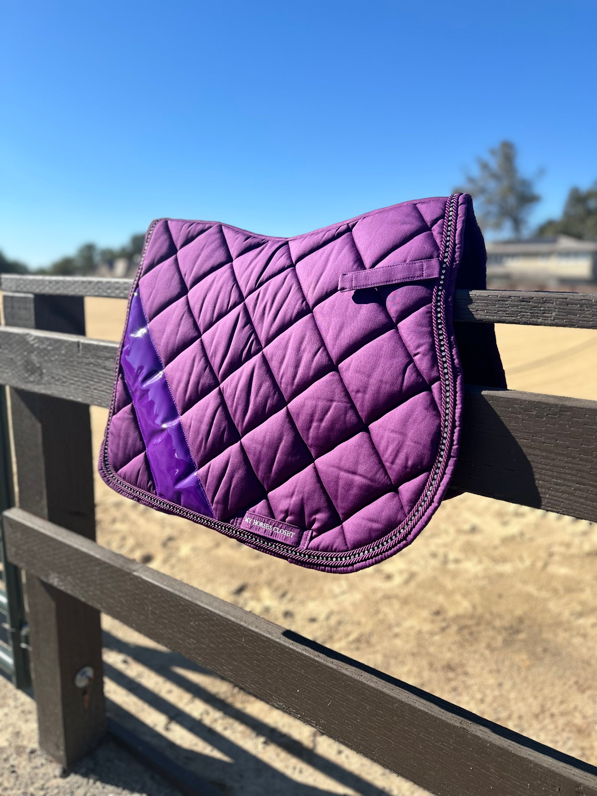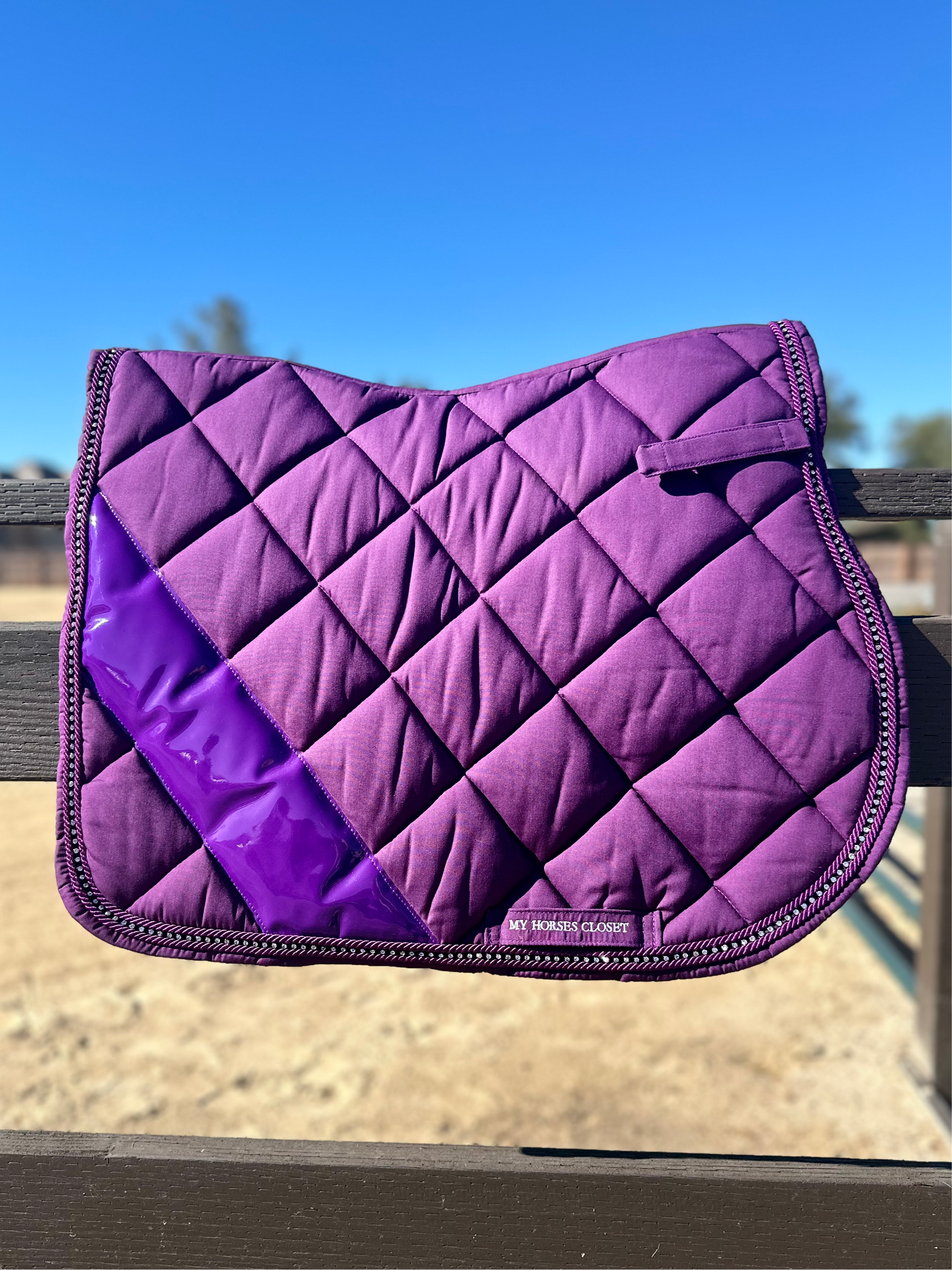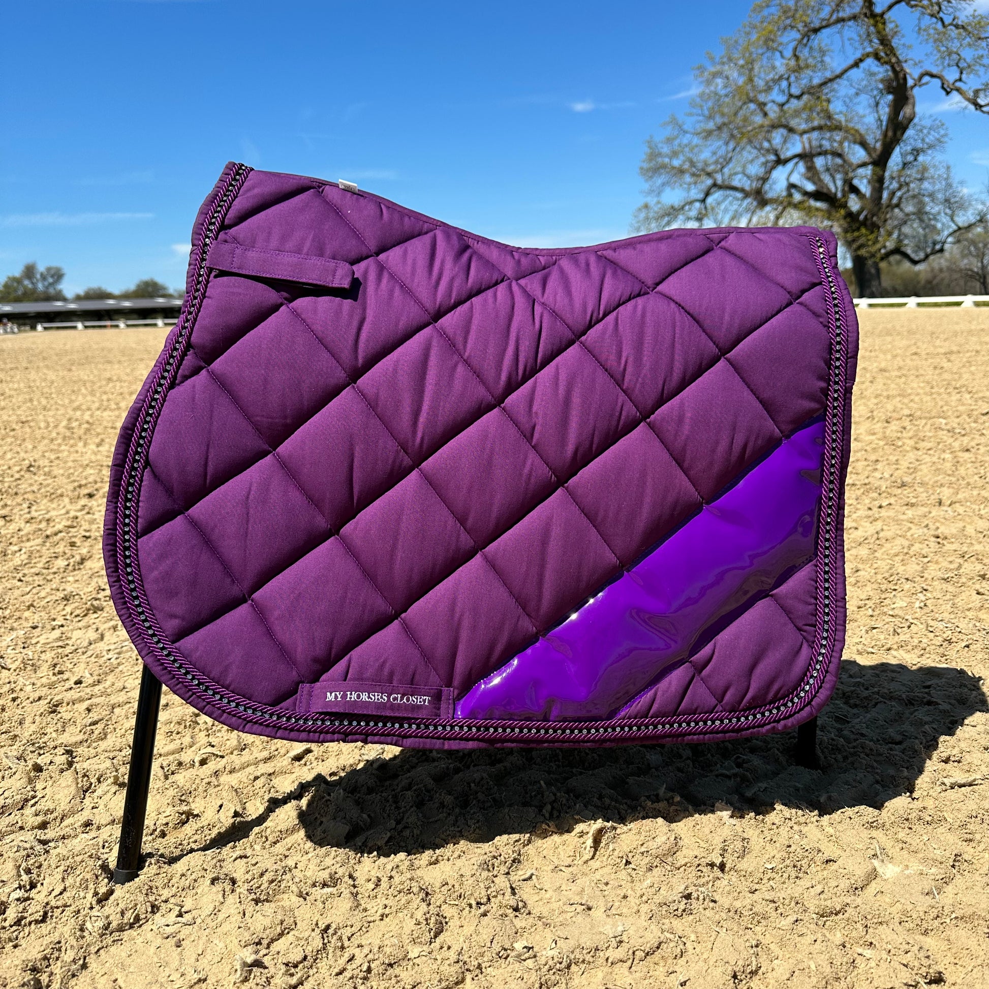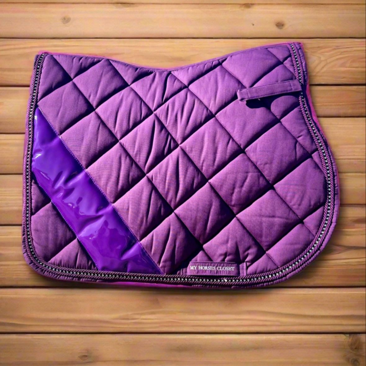 It features a premium quality cotton surrounded by a line of crystals and trim ropes. This beautiful saddle pad also has glossy decorative stripe to elevate its look.