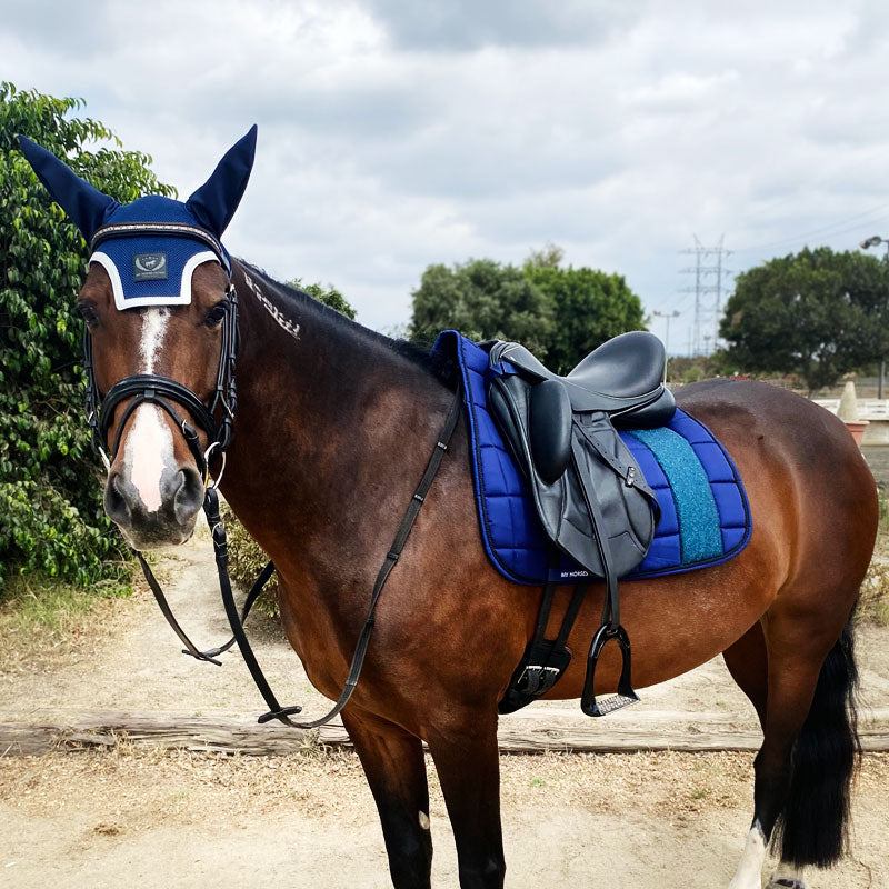 STRIPE Glitter Mesh Sparkly Dressage Saddle Pad Navy Blue