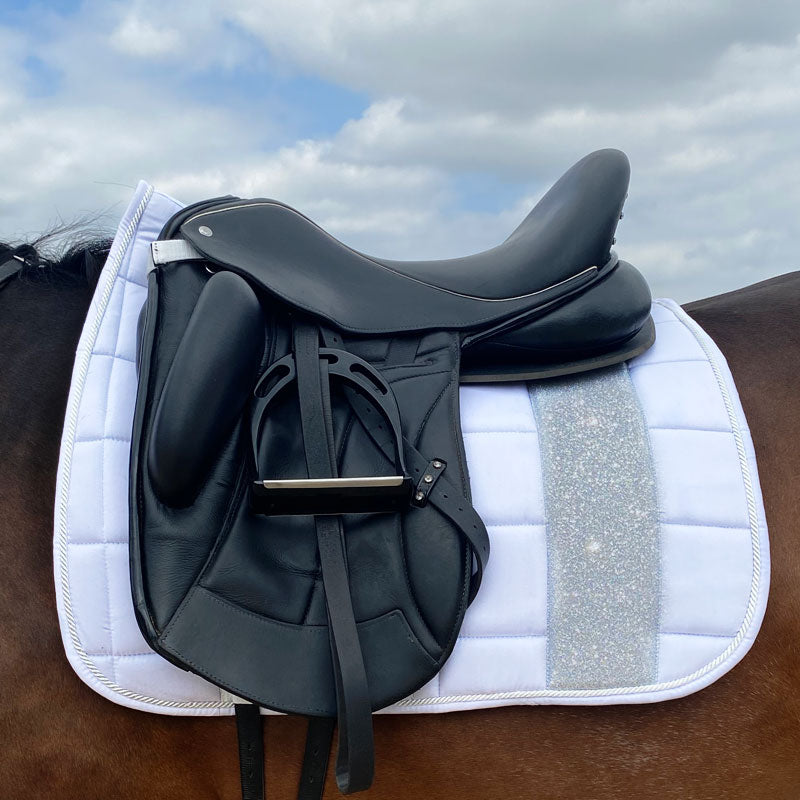 STRIPE Glitter Mesh Sparkly Dressage Saddle Pad White Silver