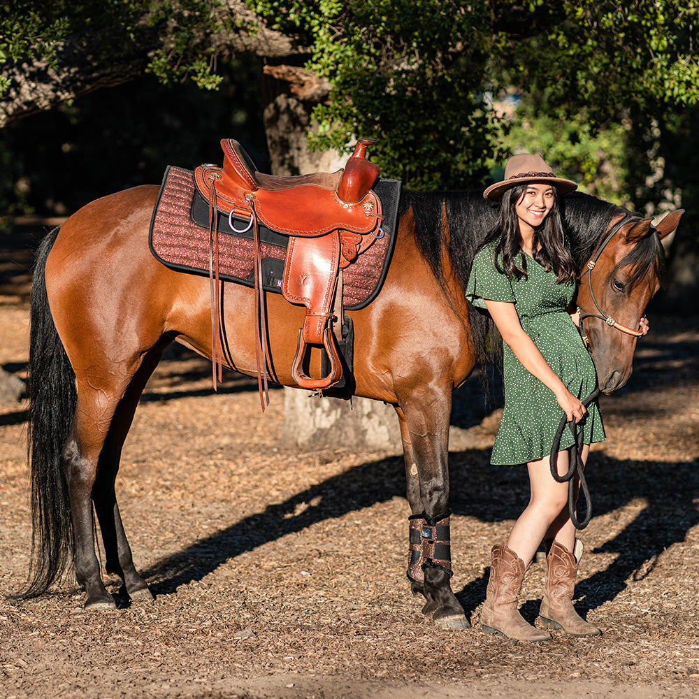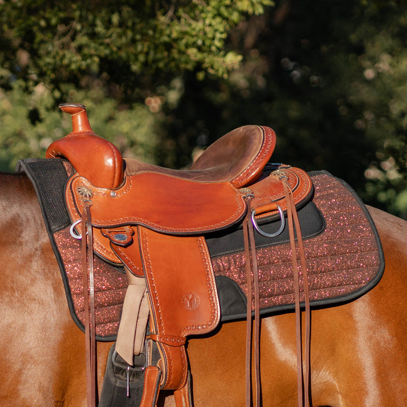 Lining in our Mesh Technic fabric, it gives the ability for the humidity to go through easily. Wither/spine in full Mesh for comfort and breathability. This pad stays discrete in the shade but shines bright like a diamond when the sun is out!